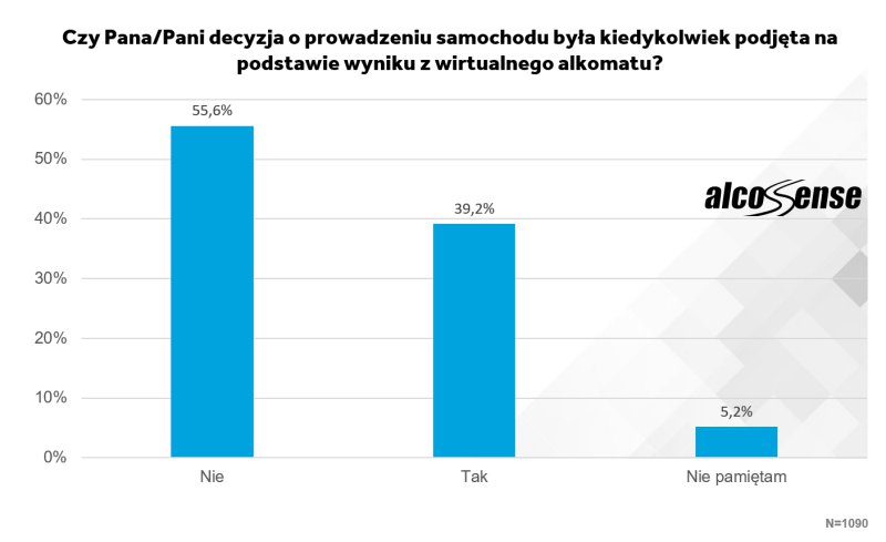 Według badania AlcoSense Laboratories** wielu kierowców, którzy skorzystali z alkomatu online, potraktowało jego wskazania jako wiarygodne prognozy trzeźwienia. Prawie 40% z nich podjęło na podstawie takich wyników decyzję o prowadzeniu pojazdu.