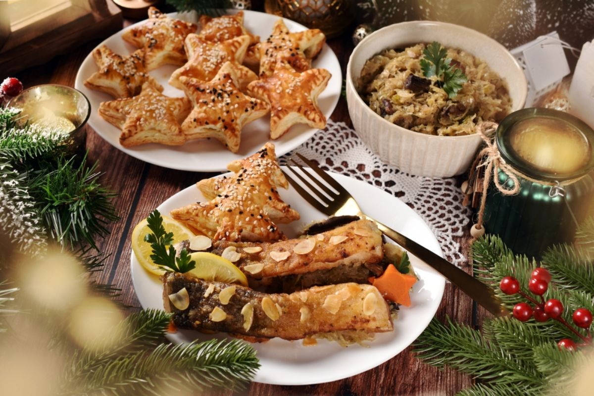 Karp pieczony z migdałami doskonale smakuje podany z pieczonymi ziemniakami, kaszą lub sałatką z kapusty kiszonej.