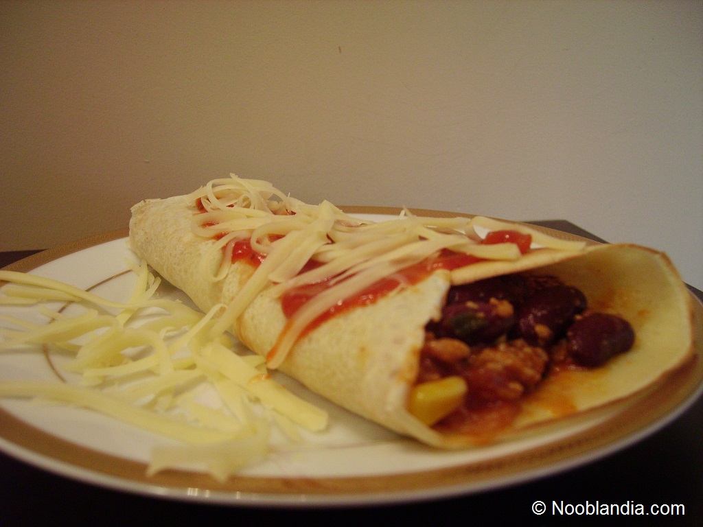 Do mięsa dodać kukurydzę, czerwoną fasolkę i tyle sosu pomidorowego żeby nadzienie nie było zbyt rzadkie. Całość dusić 10 minut na małym ogniu. Doprawić jeśli trzeba.