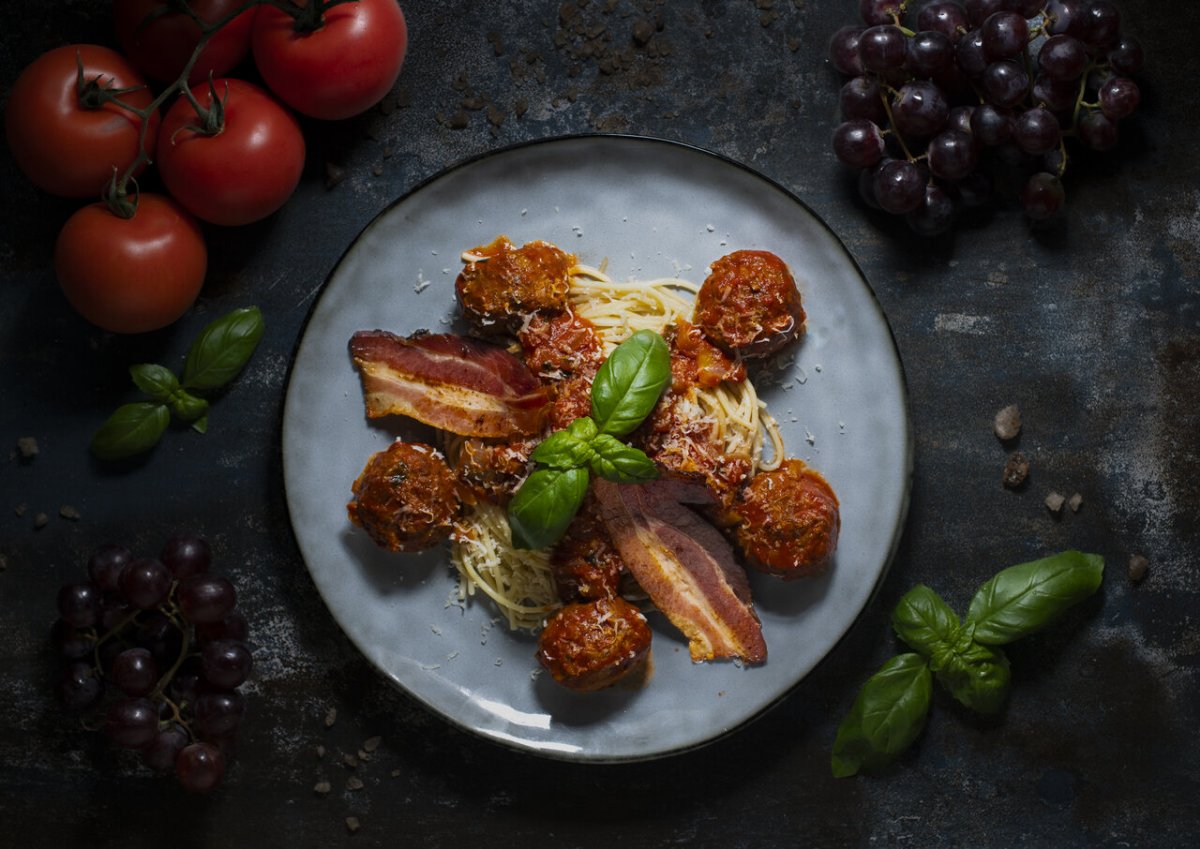 Spaghetti, czyli słynny długi makaron trafił do Włoch z krajów arabskich, gdzie najszybciej opanowano technikę jego suszenia pozwalającą na dłuższe przechowywanie. Dzisiaj trudno wyobrazić sobie bez tego produktu włoską kuchnię. W naszym przepisie polecamy ten klasyczny makaron z sosem pomidorowym wzbogaconym klopsikami i boczkiem.