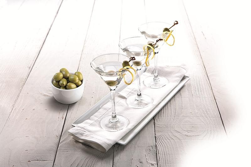 Do shakera wkładamy kilka kostek lodu, wlewamy alkohol i wstrząsamy. Przelewamy do wysokiego kieliszka koktajlowego. Dodajemy odrobinę soku z cytryny oraz zielone oliwki. Drinki podajemy ozdobione cienko skrojonymi paseczkami skórki cytrynowej.