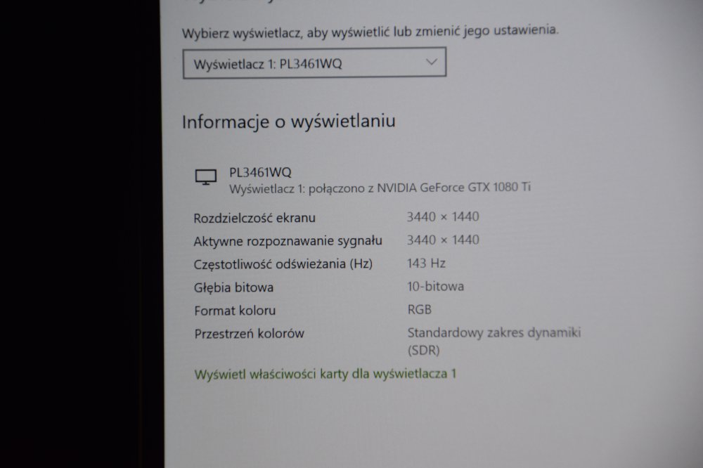 Przed przesiadką na nowy monitor miałem pewne obawy czy moja karta graficzna podoła takiej rozdzielczości. Jak by nie patrzeć jest to takie niepełne 3K, a w moim komputerze pracuje tylko GTX 1080Ti. Dlatego zanim przesiadłem się na nowy monitor porobiłem testy w benchmarkach gier, tak aby później je porównać. W zależności od gry, spadek fps-ów jaki odnotowałem, to od 10 do 30 fps-ów w dół w zależności od testowanego tytułu. Największy spadek z testowanych gier zaliczyłem w Assassin Creed Odyssey. Szczerze, obawiałem się, że będzie gorzej, tym bardziej, że monitor natywnie obsługuję tylko rozdzielczość 3440x1440. Jeśli ktoś ma słabszą kartę i chciałby użyć niższej rozdzielczości np. 2560x1080 to niestety ale się zawiedzie, bo monitor takiej rozdzielczości nie obsługuje. Oczywiście zawsze można zejść do rozdzielczości, która oferuje obraz w formacie 16:9. Ale jaki jest wtedy sens użytkowania takiego monitora? W ustawieniach panelu Nvidii nie da się ustawić wspomnianej rozdzielczości 2560x1080, dostajemy informację, że taka rozdzielczość nie jest obsługiwana przez ten monitor. Dlatego, jeśli ktoś chce się zaopatrzyć w G-Master GB3461WQSU-B1 i korzystać z technologi ultra wide, to na chwilę obecną musi posiadać kartę graficzną z wyższej półki. Oczywiście za parę miesięcy sytuacja ulegnie zmianie kiedy to pojawią się nowe karty graficzne, które lepiej będą sobie radziły z takimi niewymiarowymi rozdzielczościami. I całkiem możliwe, że karty ze średniej półki będą w stanie wyświetlić zadowalającą ilość klatek w grach. Na plus jest wsparcie G-sync Comatible, który działa z wbudowanym Freesync-iem. Jednak aby monitor był w ogóle widoczny w ustawieniach G-sync należy posiadać minimum sterowniki w wersji 451.48.