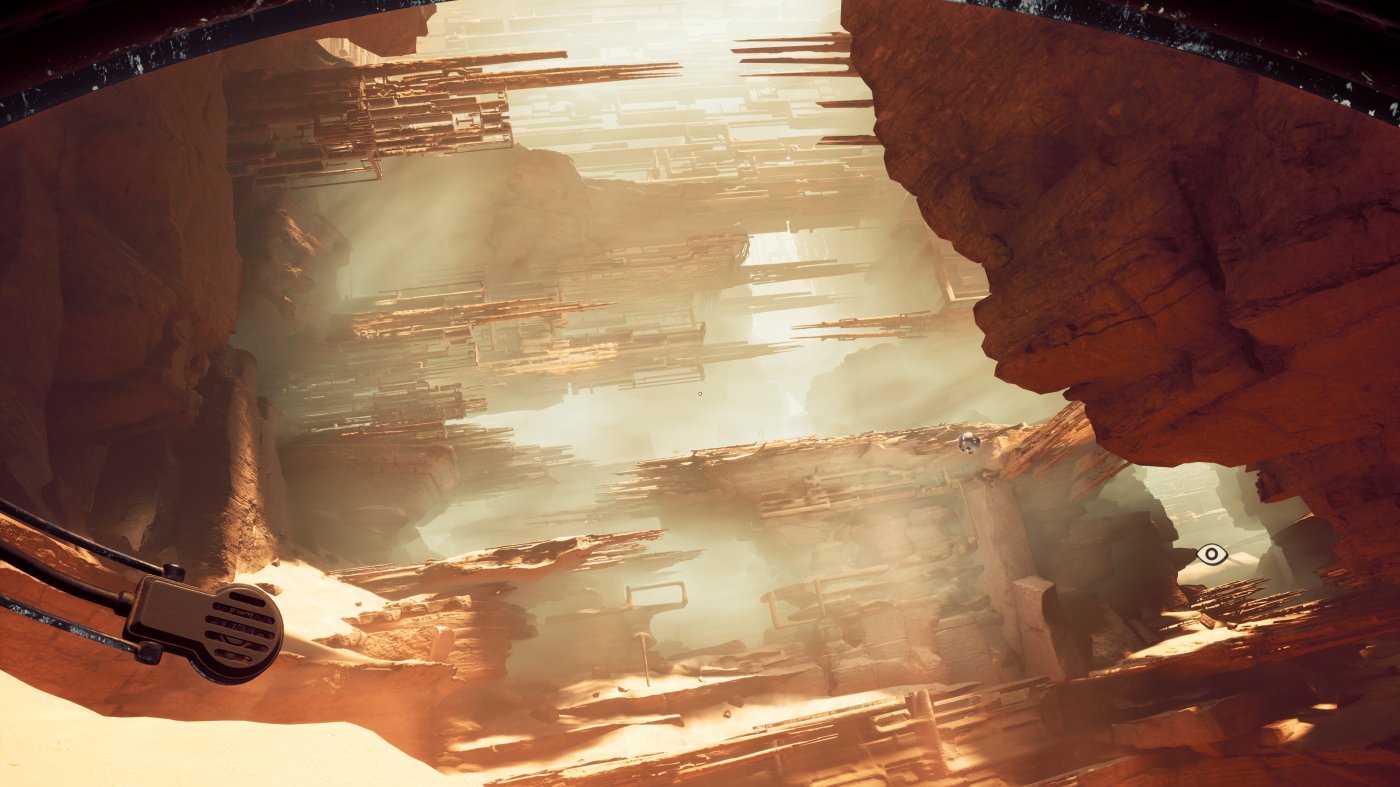 Przede wszystkim niewidzialne ściany, na które dość często natrafiałem podczas eksploracji planety. Ten element rozgrywki nie był zupełnie potrzebny, bo dało się to załatwić w inny sposób. To że lokacje były zamknięte, cóż, trzydziestoosobowe studio ma swoje ograniczenia i ja to rozumiem. Natomiast nie rozumiem, dlaczego dość często gra zabraniała mi się cofać. Zdaje sobie sprawę, że w grze znajdują się momenty kiedy nie dało się po prostu wrócić. Ale zdarzyło się, że natrafiłem dość często na sytuację, że po odwróceniu się i zrobieniu kilku kroków przejście, którym co dopiero przyszedłem było zablokowane przez wspomnianą niewidzialną ścianę.