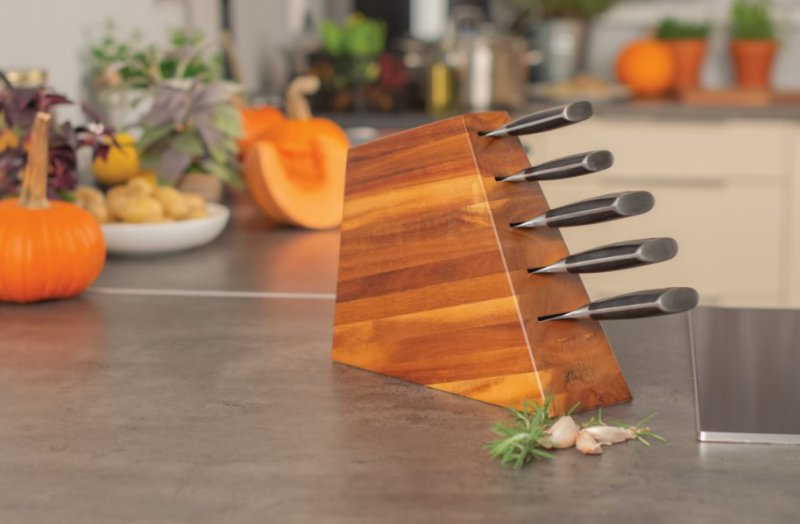 Gdzie zatem szukać miejsca dla noży? Dużo lepszym rozwiązaniem są listwy magnetyczne oraz drewniane lub wykonane z innego materiału specjalne bloki na noże z przegródkami. Dzięki nim ostrza nie będą stykać się ze sobą, a tym bardziej z innymi akcesoriami.
