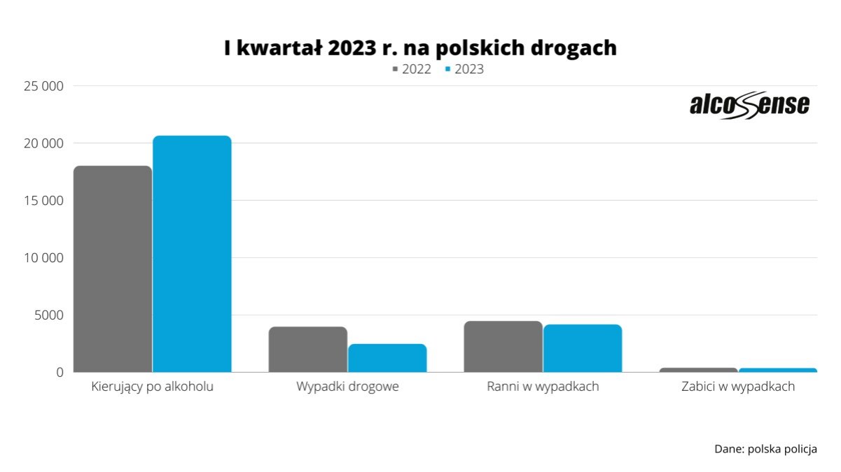 Przez pierwsze trzy miesiące 2023 r. polska Policja zatrzymała 20 631 pijanych kierowców. To o 15% więcej niż w pierwszym kwartale ubiegłego roku. Średnio każdego dnia na drogi wyjeżdżało aż 228 osób prowadzących pojazdy pod wpływem alkoholu.