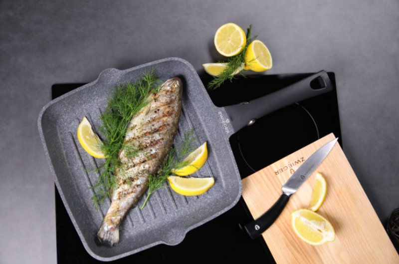 - Do grillowania wybierajmy świeżą rybę. Niestety te mrożone mogą się po prostu rozpaść i stracić smak. Potrawę najlepiej przygotować na specjalnej patelni grillowej, która nie będzie wymagać dużej ilości tłuszczu. Natomiast ten, który wytopi się z ryby podczas grillowania, trafi pomiędzy znajdujące się na dnie patelni wypustki. Marynatę możemy przyrządzić z oliwy z oliwek, soku z cytryny, ziół, koperku oraz oczywiście soli i pieprzu – tłumaczy ekspert marki Zwieger.