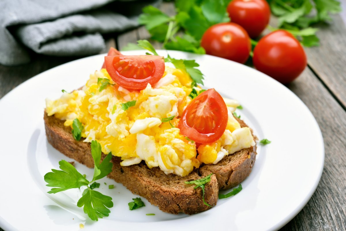 Jajecznicę zwykle jemy z talerza, ale to nie jedyna możliwość. Równie dobrze smakuje nałożona na pieczywo. Taką „jajecznicową” kanapkę można jeść z dodatkiem pomidora, ale jest doskonała także wzbogacona kawałkiem wędzonego łososia i posypana rukolą lub bazylią.