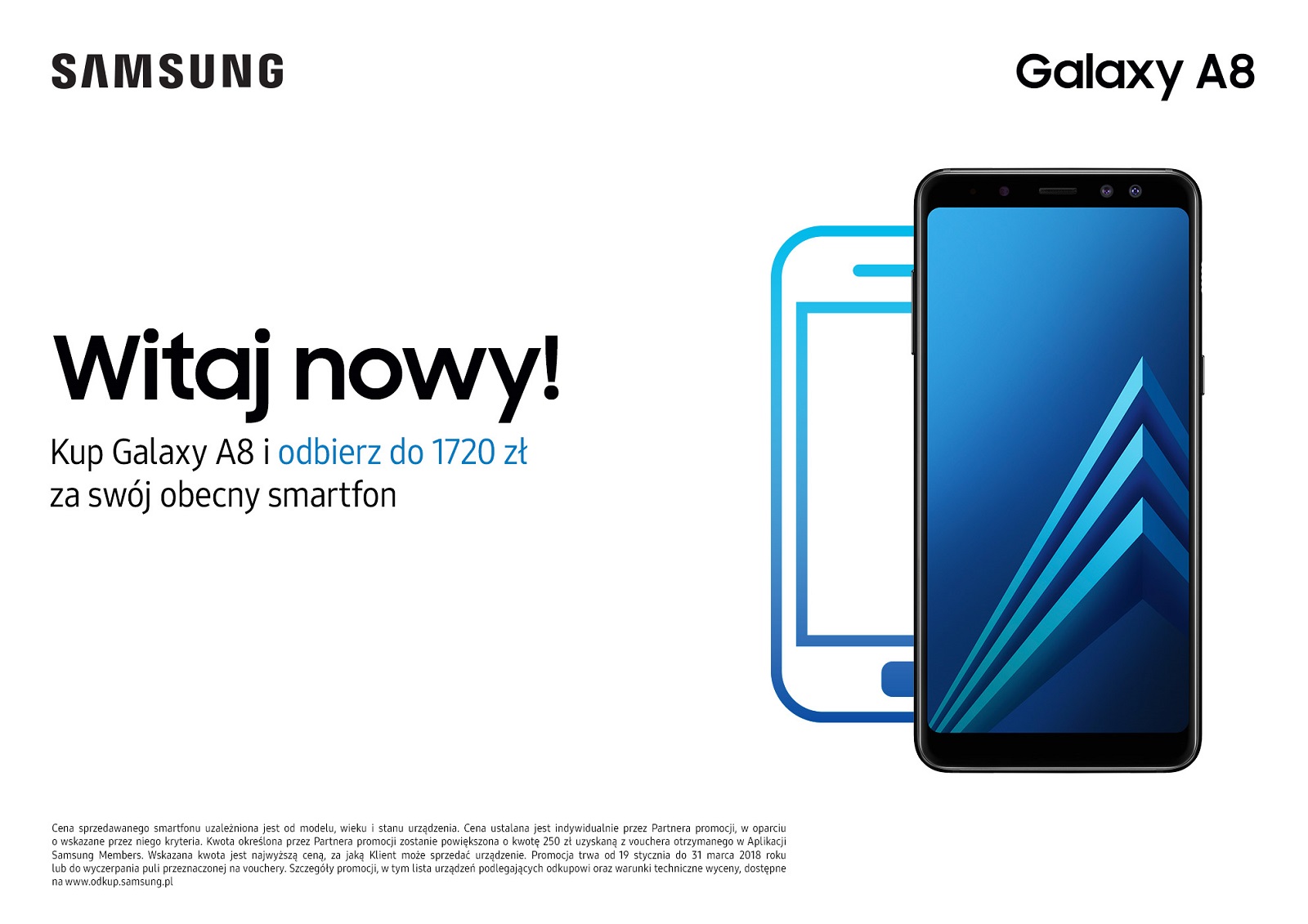 Promocja „Witaj nowy” obejmuje modele: Galaxy A8, Galaxy S8/S8+, Galaxy Note8 a także tablet Galaxy Tab S3. W jej ramach, osoby, które kupią wyżej wymienione urządzenia firmy Samsung, będą mogły odsprzedać stary smartfon oraz otrzymać od firmy Samsung dodatkowy bon o wartości 250 zł, który zwiększa kwotę odsprzedaży niezależnie od wyceny starego smartfonu. Co ważne, z oferty mogą skorzystać również wszyscy klienci, którzy zamówili model Galaxy A8 w przedsprzedaży.