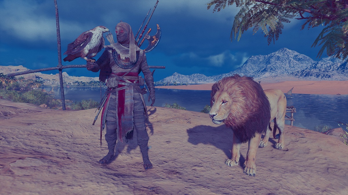 W grze pojawiają się co jakiś czas na mapie turkusowe wykrzykniki, i są to misje gdzie możemy pomścić innego gracza, którego zabił dany przeciwnik NPC. Mimo iż za takie misje nie dostaniemy zbyt dużo doświadczenia to jest to coś świeżego. Do tego wszystkiego możemy oceniać prace graficzne innych graczy dając im serduszko, oczywiście samemu też mamy możliwość podzielenia się swoją twórczością. Jazda na wierzchowcach również doczekała się odświeżenia, zaimplementowany system auto jazdy do celu pozwala na odprężenie się i podziwianie widoków, lub można potrenować strzelanie do przeciwników z łuku. W samej grze możemy zapolować na różnego rodzaju zwierzynę ale możemy ją również oswoić. System dnia i nocy, który słabo sprawdza się w innych tytułach od Ubisoft doczekał się mechanizmu, dzięki któremu będziemy mogli dostosować czas do wymogów misji, lub po prostu zmienić sobie porę dnia na taką, która nam odpowiada. Ja osobiście jestem przeciwny trybowi dnia i nocy w grach, zwłaszcza w takich gdzie w nocy nie widać nic poza czarnymi plamami. Przykładem może być wspomniany już wcześniej Ghost Recon Widlands. Jak widać da się takie coś zaimplementować w grach dla wygody i zdrowia gracza.