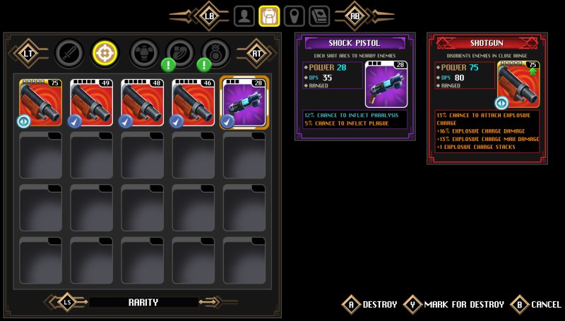 Jeśli mowa już o broni to należy wspomnieć, że postać ma do dyspozycji broń ręczną oraz pistolet. Z broni ręcznych mamy do dyspozycji różnego rodzaju miecze czy też kosy. Każda z nich charakteryzuje się innym stylem walki. Jeśli chodzi o pistolety, to mamy ich duży wybór. Od pistoletów, skończywszy na shotganach. Oczywiście mamy też zbroje oraz pierścień i naszyjnik. Im bardziej unikatowy sprzęt tym lepsze atrybuty oferuje.
