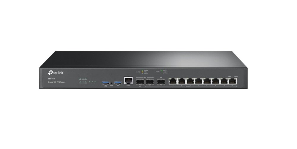 W ER8411 znajdziemy jeden port 10G SFP+ WAN, jeden port 10G SFP+ WAN/LAN, port 1G SFP WAN/LAN, osiem gigabitowych portów WAN/LAN oraz port konsolowy. Dwa porty USB pozwalają natomiast podłączyć modemy LTE jako połączenia zapasowe. Co ważne, router wyposażono w funkcję równoważenia obciążenia pasma Multi-WAN, pomagającą w odpowiedniej dystrybucji strumieni danych. Dwa redundantne zasilacze urządzenia gwarantują nieprzerwaną pracę. Urządzenie wspiera wiele standardów VPN, co umożliwia utworzenie setek tuneli umożliwiających bezpieczny, zdalny dostęp do zasobów firmowych. O bezpieczeństwo danych firmy dba również wbudowany firewall.