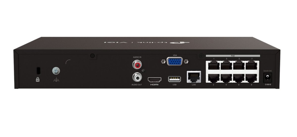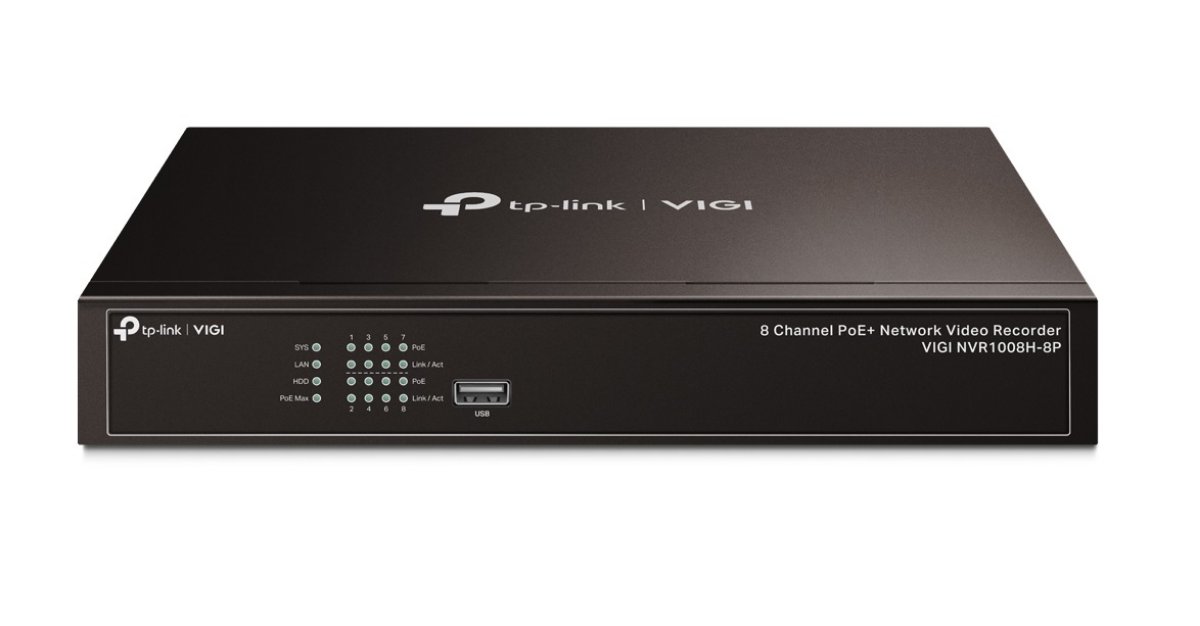 Kolejną nowością od TP-Link jest 8-kanałowy sieciowy rejestrator wideo VIGI NVR1008H-8P, który dzięki wbudowanemu ośmioportowemu switchowi PoE+ pozwala zasilić podpięte do niego kamery – nie ma więc potrzeby korzystania z dodatkowych urządzeń lub kabli zasilających, NVR1008H-8P oferuje wsparcie PoE w standardzie 802.3af/at, a łączny budżet mocy wbudowanego przełącznika to 53W. Wyjście wideo 4K poprzez HDMI pozwala na przeglądanie materiału wideo w wysokiej rozdzielczości. NVR umożliwia również jednoczesne przeglądanie do 8 kamer jednocześnie. Dodatkowo, rejestrator obsługuje technologię Plug&Play, która automatycznie wykrywa i adaptuje kamery VIGI. Urządzenie może być także umieszczone w szafie rack. Rejestrator obsługuje on dyski twarde SATA o pojemności do 10TB, co pozwala na nieustanne nagrywanie przez długi czas. Co więcej, wsparcie interkomu umożliwia prowadzenie rozmów przez kamery podłączone do rejestratora.