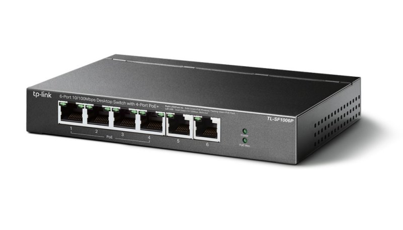 Ostatnim nowym modelem jest przełącznik TL-SF1006P. Posiada on 6 portów 10/100Mb/s, w tym 4 porty PoE+. Do każdego z portów PoE można podłączyć urządzenie o maksymalnym poborze mocy do 30 W, a łączny budżet mocy przełącznika wynosi 67 W. TL-SF1006P również posiadają funkcję Priority, dzięki której powstaje możliwość nadania wyższych priorytetów portom 1-2 oraz tryb Extend PoE, dzięki któremu zasilimy urządzenia oddalone nawet o 250m. Switch TL-SF1006P to niezwykle praktyczne urządzenie: cztery porty PoE mogą posłużyć do zasilenia domowej instalacji kamer, zaś pozostałe porty do podłączenia rejestratora oraz integracji z resztą sieci.