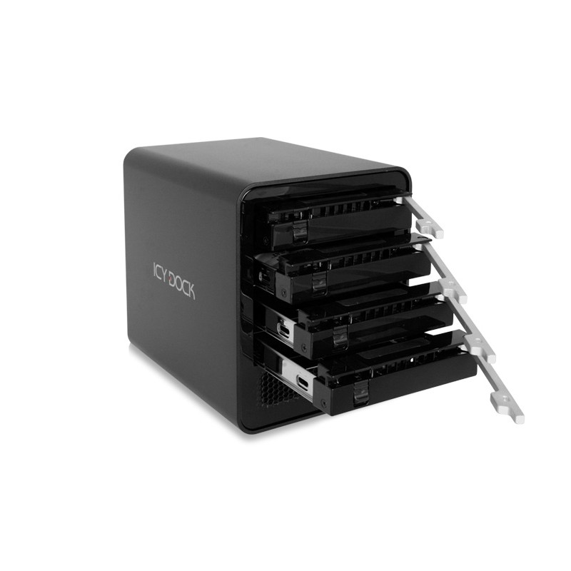 Icy Dock ICYCube MB562U4S-4SB R1 to czterozatokowa, zewnętrzna obudowa JBOD na 2,5- i 3,5-calowe dyski z SuperSpeed USB 3.0 i interfejsem eSATA. Jest ona przeznaczona dla tych, którzy potrzebują dużej powierzchni przechowywania danych i najwyższej jakości wykonania. USB 3.0 z obsługą UASP zwiększa prędkość przesyłania danych lub renderowania dużych plików podczas dostępu do czterech pojedynczych napędów.