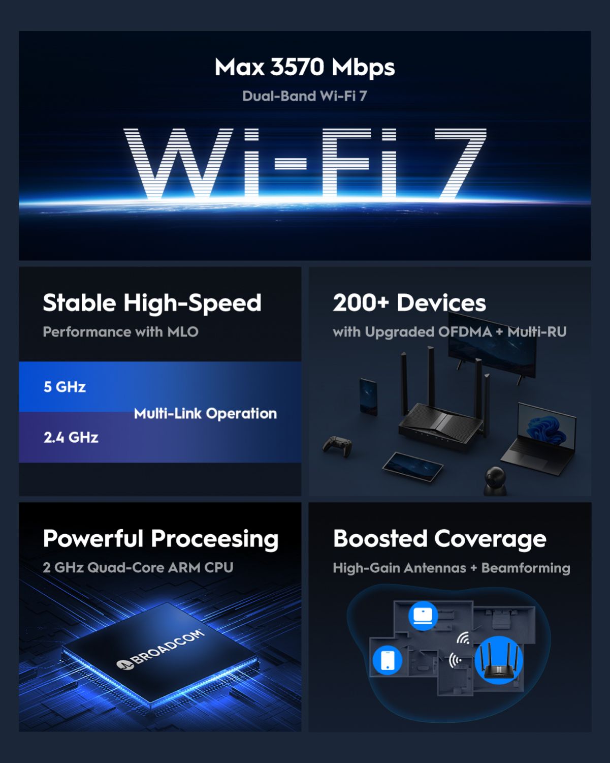 Wi-Fi 7 (802.11 a/b/g/n/ac/ax/be) |