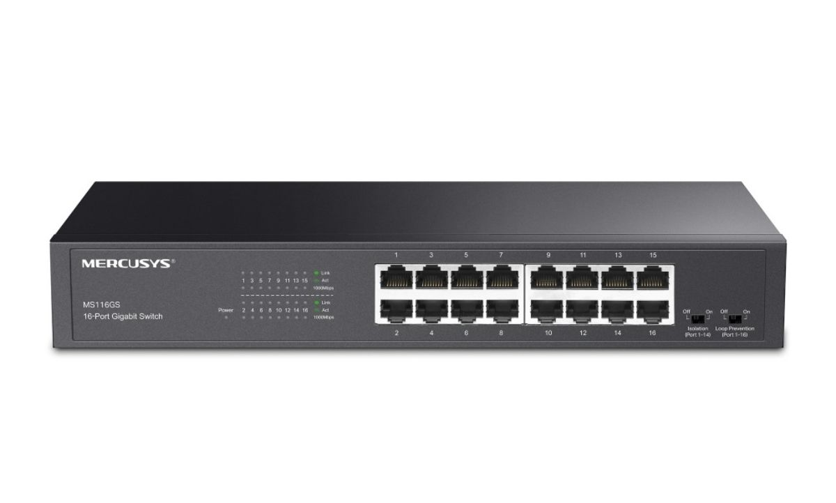 Uzupełnieniem oferty jest wyposażony w 16 gigabitowych portów RJ45 przełącznik MS116GS. To profesjonalne rozwiązanie sieciowe do przestrzeni domowej i małego biura, które umożliwia szybkie przesyłanie danych w domowej lub biurowej sieci. Tryb izolacji zwiększa bezpieczeństwo, zapobiegając nieautoryzowanemu dostępowi do poszczególnych segmentów sieci i eliminując ryzyko snoopingu czy ingerencji w ruch sieciowy. Dodatkowo funkcja zapobiegania pętlom minimalizuje ryzyko awarii wynikających z błędnych połączeń sieciowych, poprawiając stabilność działania całej infrastruktury. Solidna metalowa obudowa z możliwością montażu w szafie RACK i funkcja plug and play czynią z niego przyjazną opcję dla małych sieci biurowych czy domowych. Dodatkowym atutem jest pasywne chłodzenie i brak wentylatora, które zapewniają cichą pracę nawet przy pełnym obciążeniu.