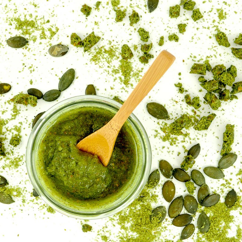 4. Makuch dyniowy (wytłoczyny z pestek dyni).